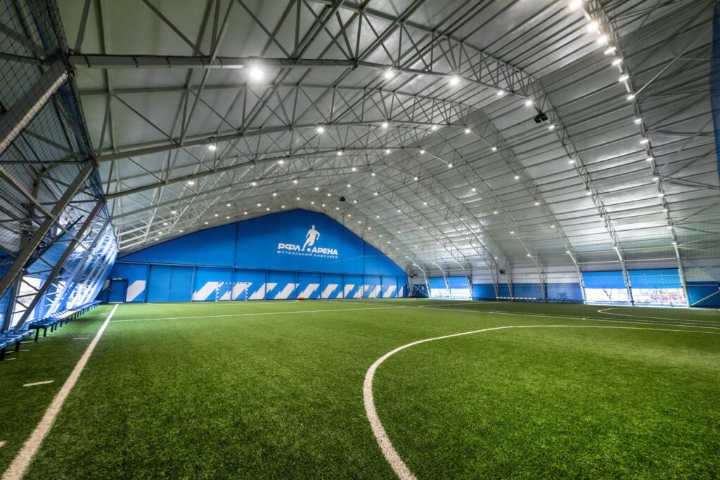 Крытые мини-футбольные поля используются круглогодично и не зависят от погодных условий. Они особенно популярны в осенне-зимний период и подходят для регулярных тренировок.
